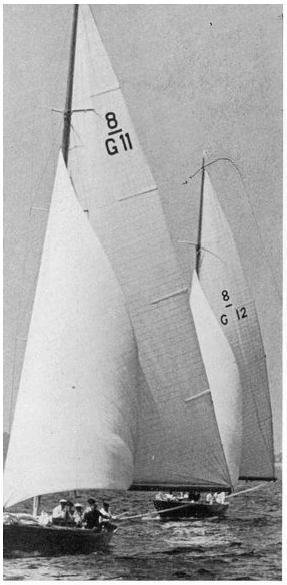 Die Achter konnten sich von Tag zu Tag verbessern, um zum Schluß ihren anfänglich überlegenen Gegnern sogar den Sieg zu entreißen. Bei frischem Südwest gab es endlich einen Amwindstart, und an diesem Tage lagen die deutschen Boote in allen Klassen im Start vorne. Das Feld der Achter blieb auf der Kreuz ziemlich geschlossen, auch die Vorwindstrecke brachte keine Verschiebung. Auf dem raumen Gang ins Ziel wurde auf beiden Booten sauber der Ballon gefahren, und dieses beharrliche Bemühen fand seinen Lohn in dem III. Preis von „Windsbraut“, während „Germania“ Vierte wurde. Siegerin wurde „Cheerio“.