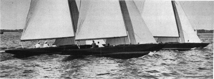 An sämtlichen Tagen hatte es immer mehr oder weniger stark geweht, so daß die Wettfahrten flott abgewickelt werden konnten. Am letzten Tage hatten die Segler dagegen noch einmal Freuden und Leiden der Flautenwettfahrt auszukosten, bei der die leichten, umlaufenden Winde höchste Aufmerksamkeit erforderten. Ein leichter Westwind brachte die Boote noch eben durch den Start, um dann ganz einzuschlafen. Nachher drehte er auf Süden, so daß es nichts zu kreuzen gab. Die ständige Formverbesserung der Achter fand ihre Krönung in dem Sieg von „Windsbraut“, die an diesem Tage alleine die deutschen Farben zu vertreten hatte, da „Germania“ zusammen mit der „Ilderim“ bereits nach Sandhamn zur Teilnahme an der Coppa d’Italia in See gegangen war. „Windsbraut“ löste ihre Aufgabe ausgezeichnet. Schon an der ersten Tonne war sie zweite und lief auf dem nächsten Gang zu ihrer schwedischen Konkurrentin auf. Nach einem scharfen Luvkampf hinter der letzten Marke sicherte sie sich die Luvposition und zog in dem auffrischenden Wind unaufhaltsam davon und einem überlegenen Siege zu.